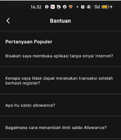 - Pada halaman Bantuan berisi informasi singkat mengenai Pertanyaan dan Jawaban yang populer seputar penggunaan aplikasi.