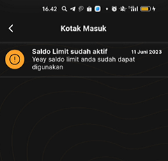 Pada halaman Kotak Masuk menampilkan informasi notifikasi terkait status Allowance, Broadcast, dan Invoice Transaksi,