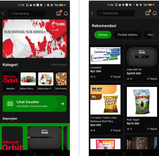 - Berikut pada halaman dibawahnya menampilkan rekomendasi produk sebagai berikut: