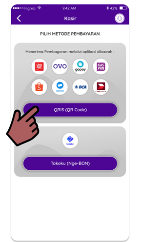 - Kode QR akan muncul pada layar aplikasi. Kode QR inilah yang akan digunakan pelanggan untuk scan dengan menggunakan e-money mereka dan akan langsung menambah ke saldo multi mereka.