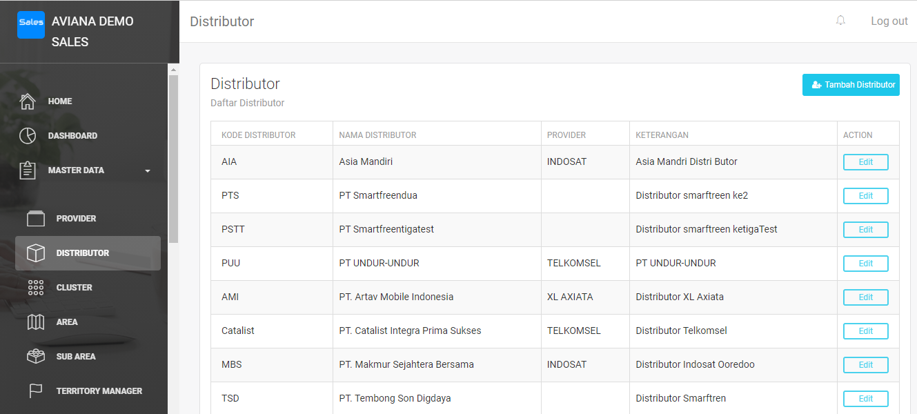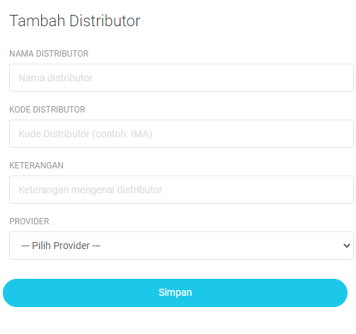 Pada menu ini admin bisa menambahkan distributor/server pada menu tambah, sebagai berikut: