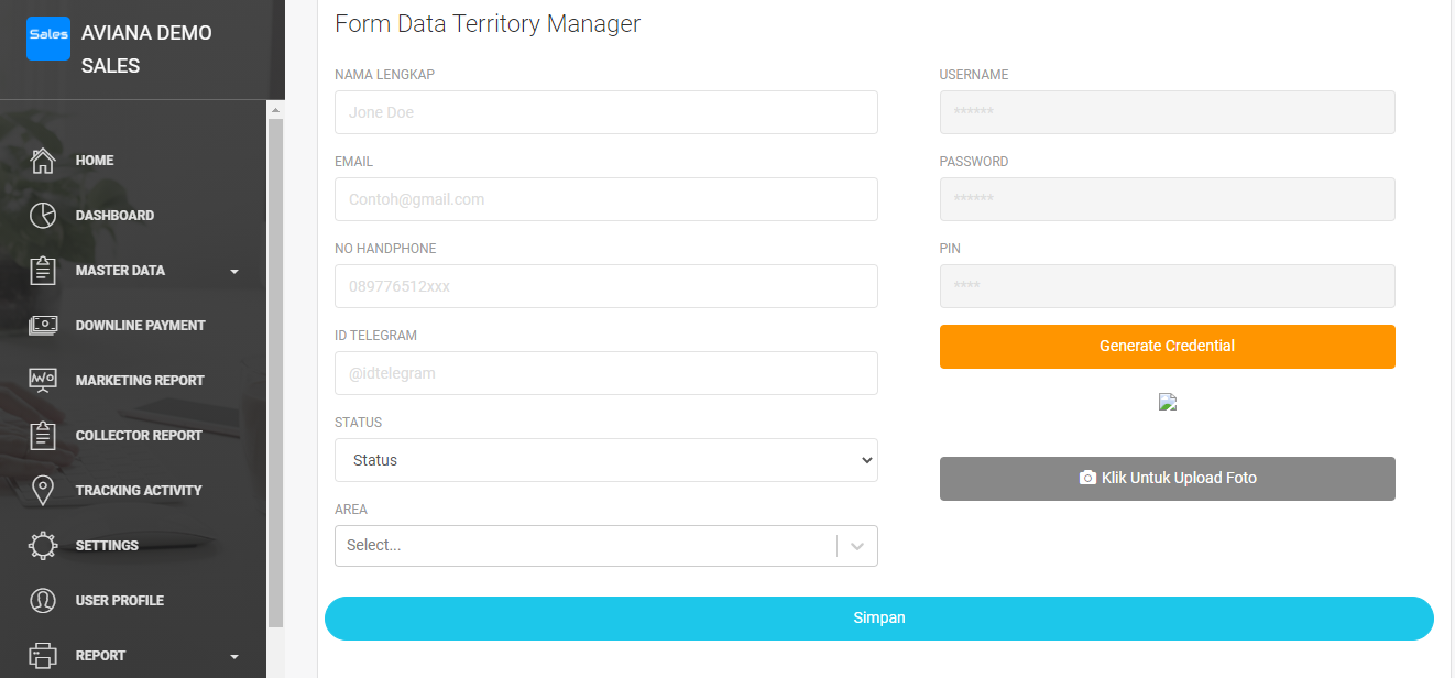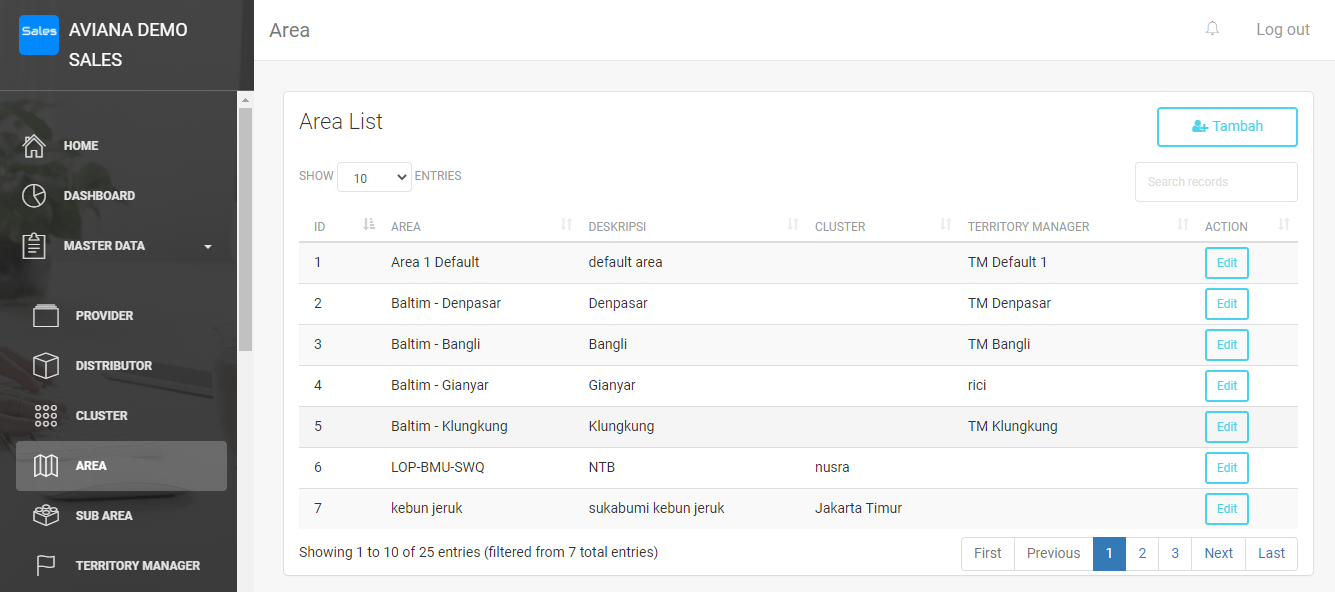 Menu ini kita bisa menambahkan Teritory Manager yang nantinya membawahi Area dan sales.
