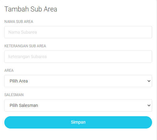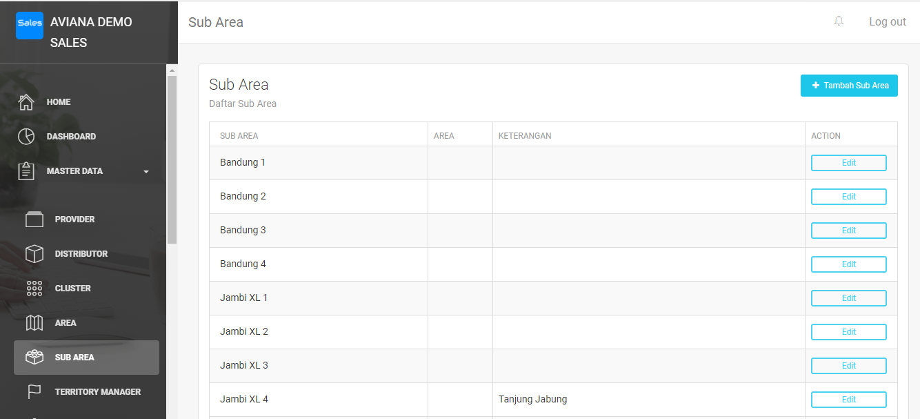 Menu sub area adalah menu dimana admin bisa menambah data sub area, mengubah atau mengganti data sub area yang sudah ada sebelumnya. Selain itu pada menu ini juga menampilkan daftar sub area yang sudah diinput sebelumnya beserta area, keterangan, dan action.