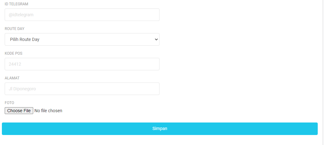 Menu ini berfungsi untuk melakukan pengisian dan merubah password dari diskripsi user web salesman.