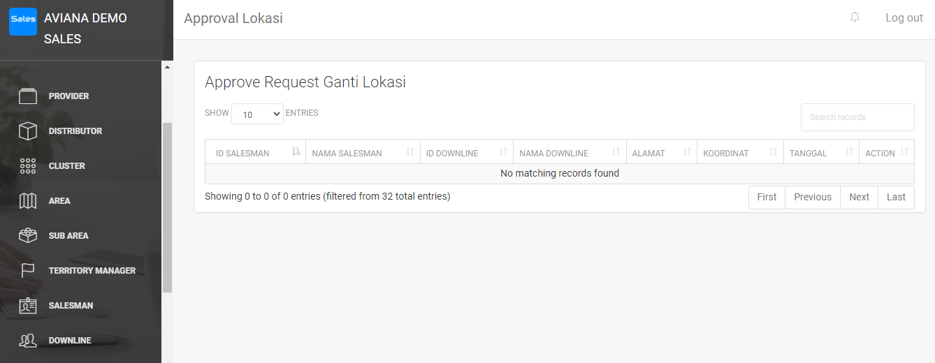 Menu approval lokasi adalah menu dimana admin dapat memantau dari daftar nama salesman yang menginginkan ganti lokasi downline.