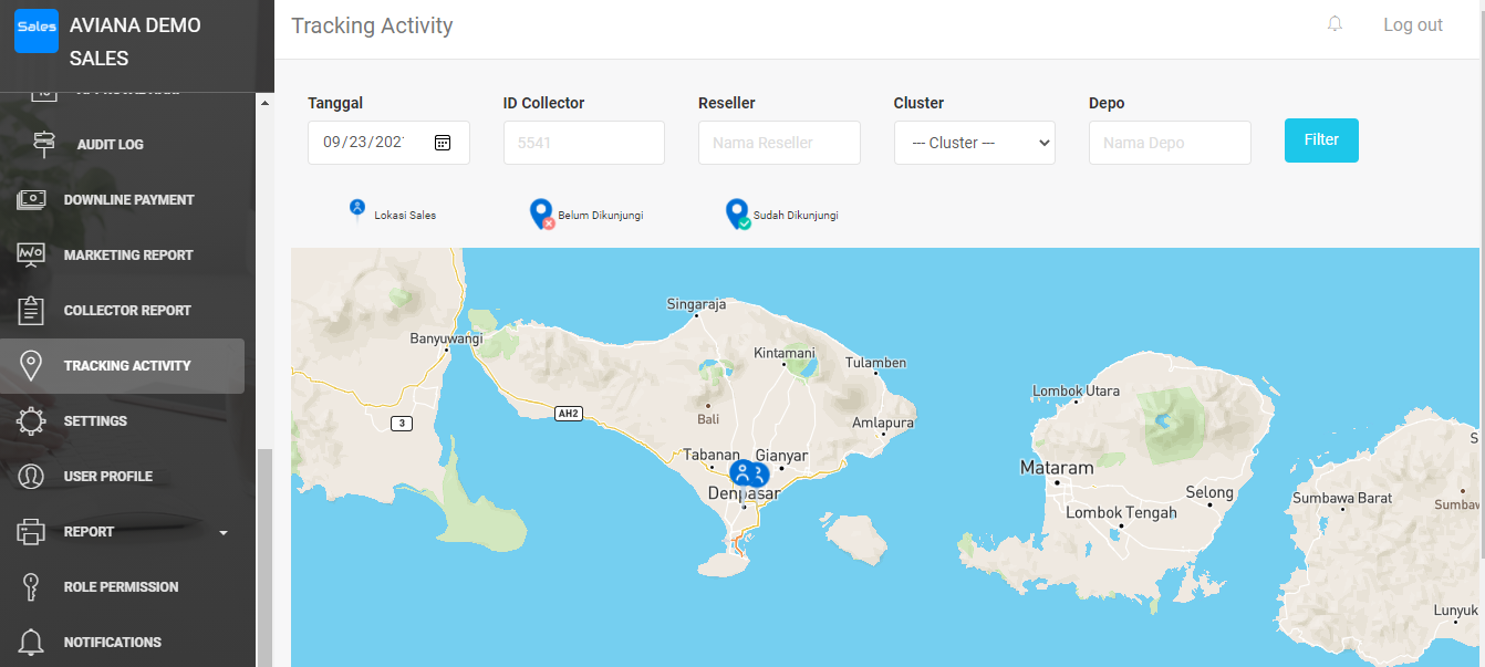 Menu tracking activity berfungsi untuk menampilkan titik koordinat salesman berdasarkan Geo tack secara realtime.