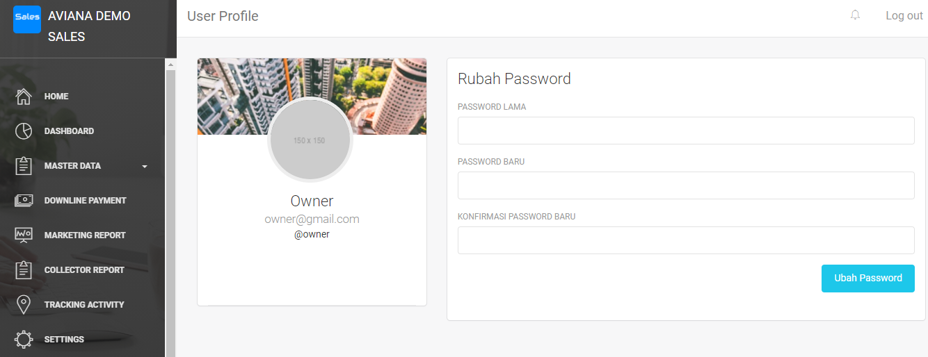Web yang dirancang untuk memudahkan owner atau admin dalam memonitoring kinerja para salesman di lapangan. Adapun menu-menu yang ditampilkan pada web salesman seperti berikut: home, dashboard, master data, report, downline payment, marketing report, tracking activity, setting, dan user profile yang memiliki pengertian dan fungsi masing-masing.