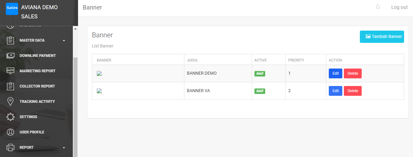 Menu ini berfungsi dimana admin bisa menambahkan banner, yang nantinya akan muncul pada aplikasi salesman.