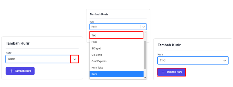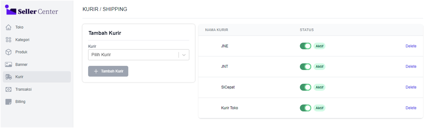 • Kemudian klik tombol “tambah kurir” di kanan bawah untuk menyimpan.
