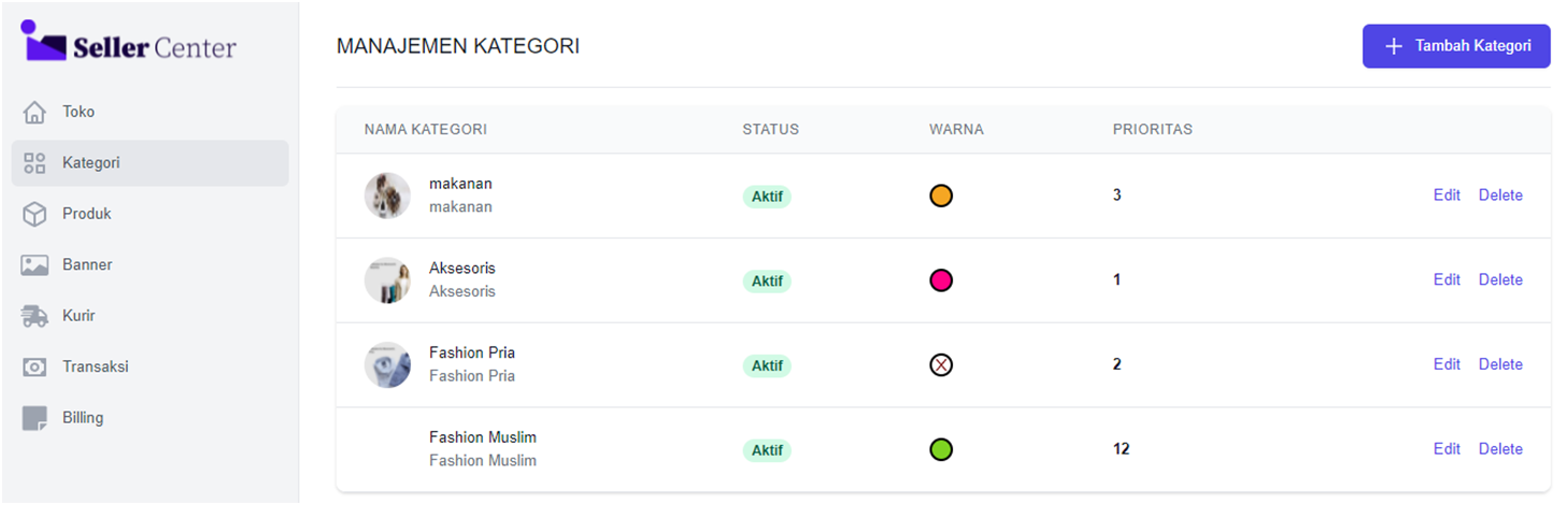 - Pengiriman : Status pengiriman (tidak selesai,order baru,sedang dikirim).