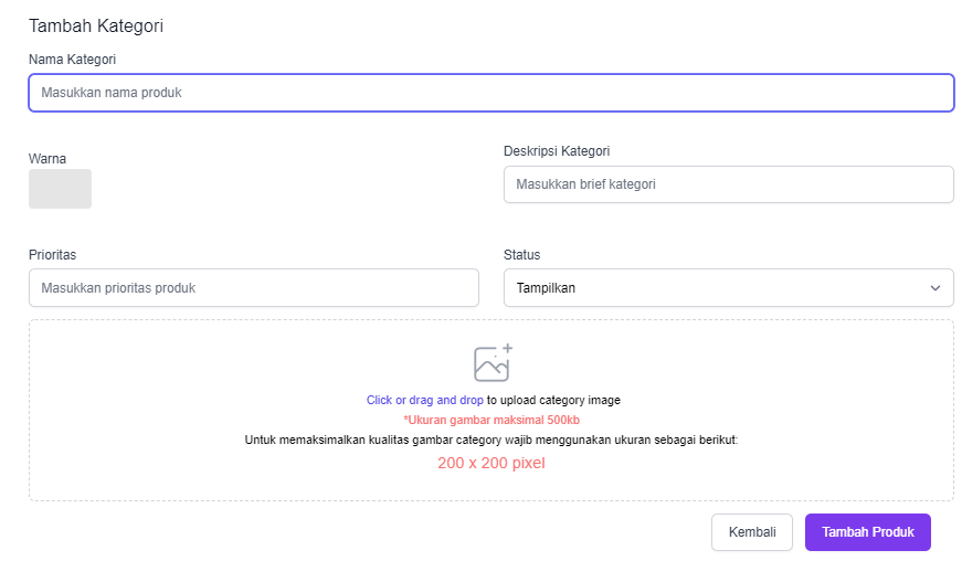 • Selanjutnya upload foto kategori sesuai dengan ukuran yang sudah ditentukan.