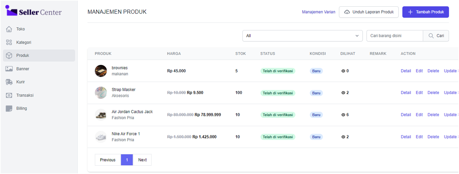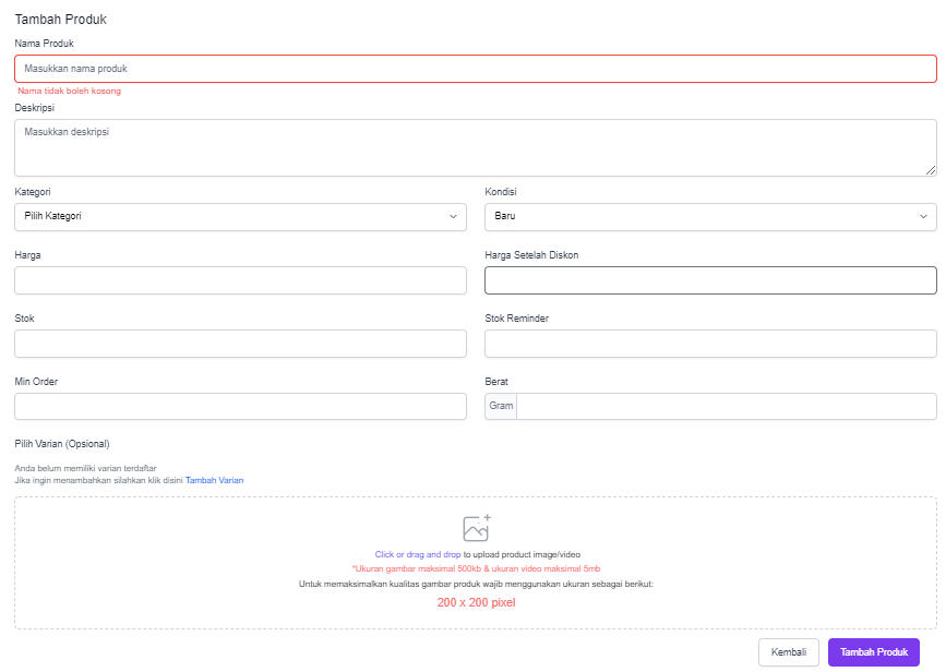 • Pilih “Tambah Produk”, isi kolom tambah produk dengan informasi barang yang ingin kita tampilkan pada e-commerce