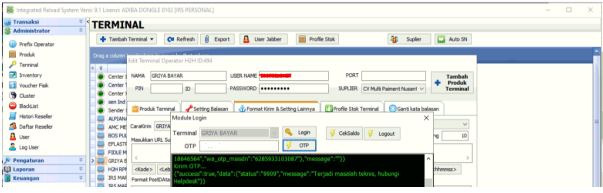 5. Selanjutnya tekan tombol X untuk keluar dari tampilan login Griya Bayar, setelah itu jalankan terminalnya lalu tinggal dicoba transaksi, untuk list kode supplier bisa dilihat pada excel.